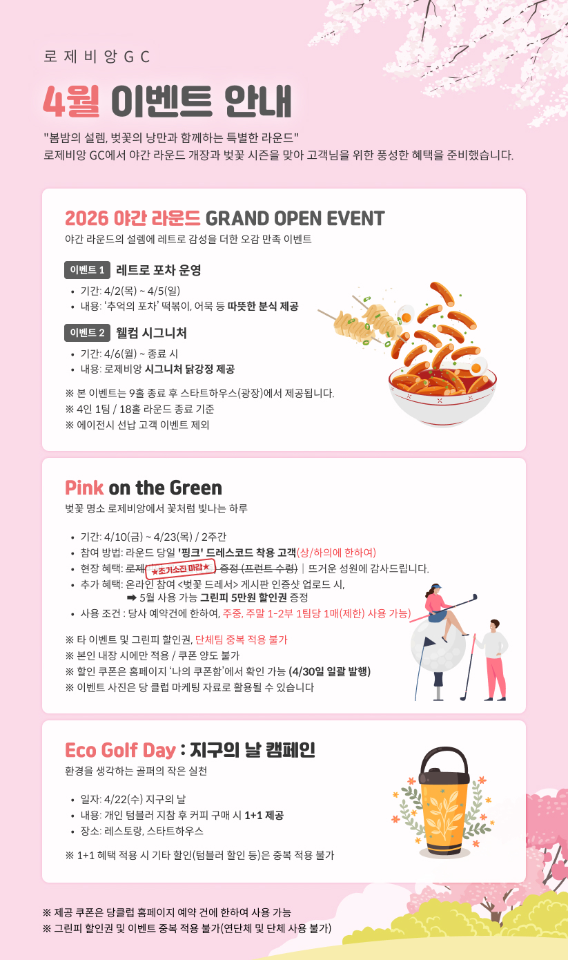 ※ 모든 그린피 할인 쿠폰은 에이전시(로제비앙 골프클럽 홈페이지 및 예약실 외 기타 골프 예약 채널)를 통한 예약 시