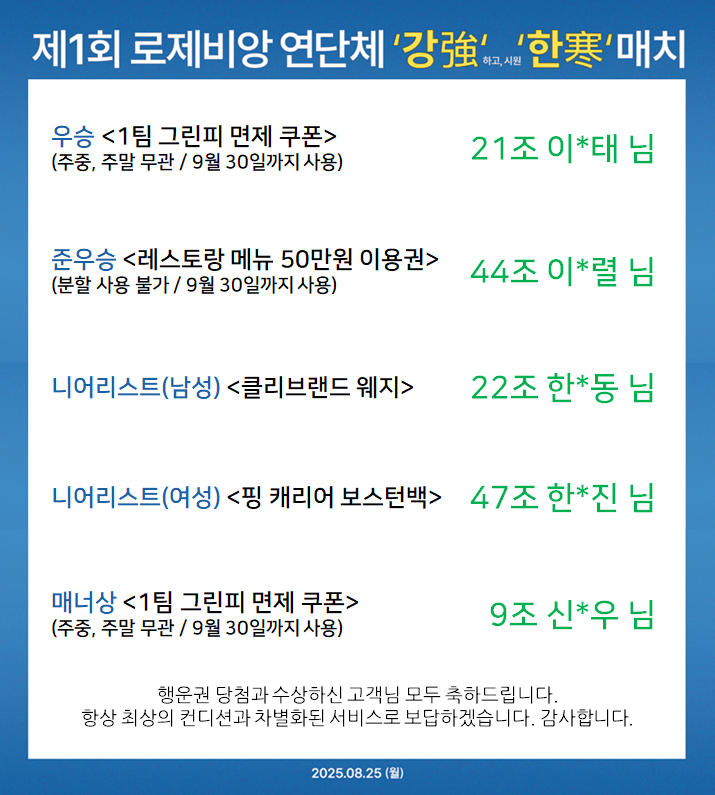 제1회 로제비앙 연단체 강!한!매치 수상자